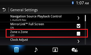 - Настройката Зона x Зона ще бъде налична в менюто с Settings (настройки), вместо да се настройва от началния екран.